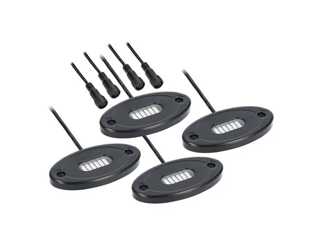 Luminous Styling. Installing this RGB 4-Pod Rock Light Kit will enhance the appearance of your performance vehicle. It is designed to provide your fine vehicle with more beautiful luminous visuals and unique wireless RGB options, thanks to its app-operated technology that allows you to pick and modify the lights to your liking.
