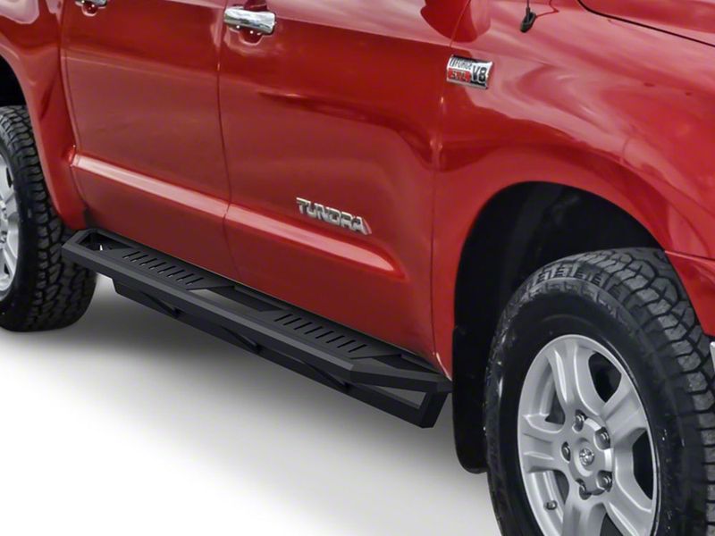 Improves Truck Accessibility and Protection. With these Rocker Armor Side Step Bars in Matte Black, you’ll have no trouble getting in or out of your Toyota Tundra. Made to deliver superior side step bar performance, these accessories can endure the toughest driving environments and handle heavy loads. Plus, they come with slotted stepping platforms to help keep your foot stable and remove any debris that gets stuck under your footwear.