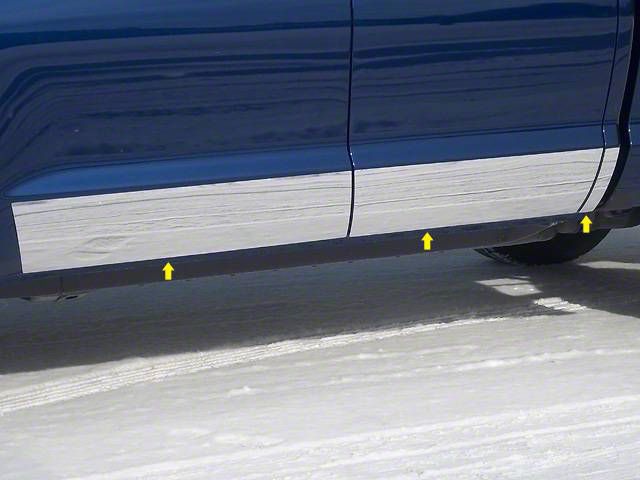 Application. This 6-piece Stainless Steel Rocker Panel Trim is designed to fit all 2014 to 2021 Toyota Tundra Double Cab models.