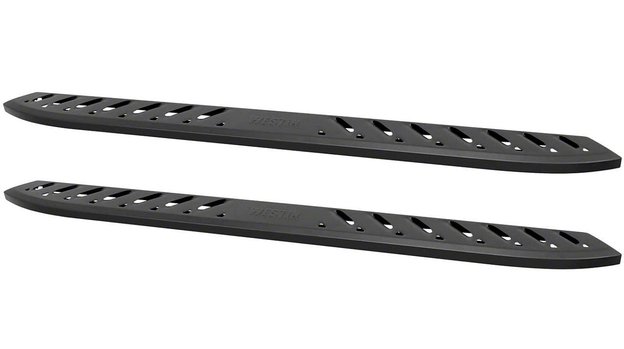 Aggressive, Tough, and Black. Engineered to handle various off-road hazards, these Thrasher Running Boards were crafted using heavy-duty, rust-resistant steel. The step areas feature a 6.50-inch wide, skid-resistant construction to keep your footings secure. Each board comes with vehicle-specific brackets with injection-molded bracket covers to mount tight and high for extreme off-roading. Additionally, the pair of steel frameworks is fortified by a high-quality, textured black powder-coated finish that reinforces your truck’s appealingly bold exterior.