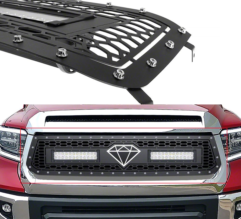 Application. The Wire Mesh Rivet Style Upper Grille Insert with LED Lights fits 2014-2017 Tundra models.