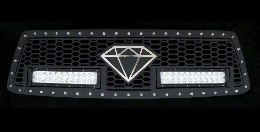 Style and Visibility. Enhance the style and visibility of your vehicle with our Wire Mesh Rivet Style Upper Grille Insert with LED Lights. This grille insert is designed to give your vehicle a bold and rugged look while also improving nighttime visibility. Whether you're on or off the road, this grille insert ensures that your vehicle stands out with its sleek black finish and rivet-style design. It's perfect for those who want to upgrade their vehicle's front-end appearance and make a statement.