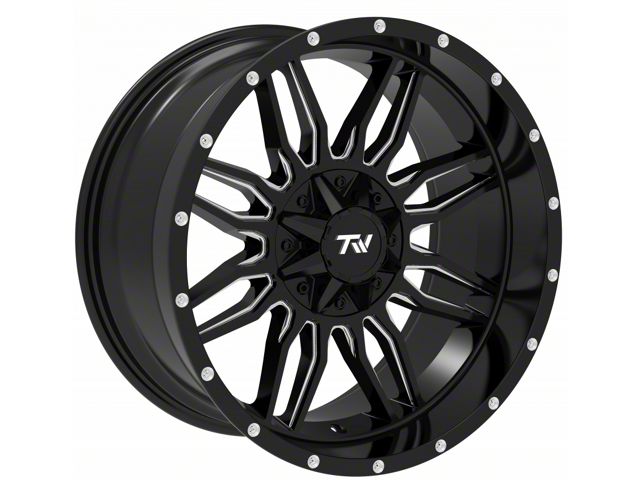 The 20x10 TW Offroad T11 Sword Gloss Black with Milled Spokes 6-Lug Wheel; 20x10; -12mm Offset is completed in a high-quality gloss black finish with milled accents that will make others green with envy. For added protection and good looks, this wheel features a durable clear coat that can withstand the hazards of daily driving.