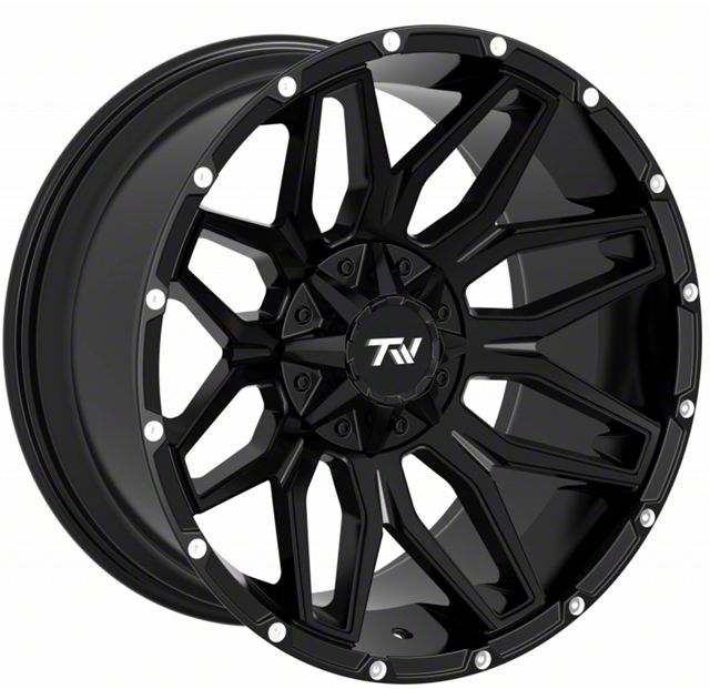 The 22x12 TW Offroad T3 Lotus Gloss Black 6-Lug Wheel; 22x12; -44mm Offset is completed in a high-quality gloss black finish that will make others green with envy. For added protection and good looks, this wheel features a durable clear coat that can withstand the hazards of daily driving.