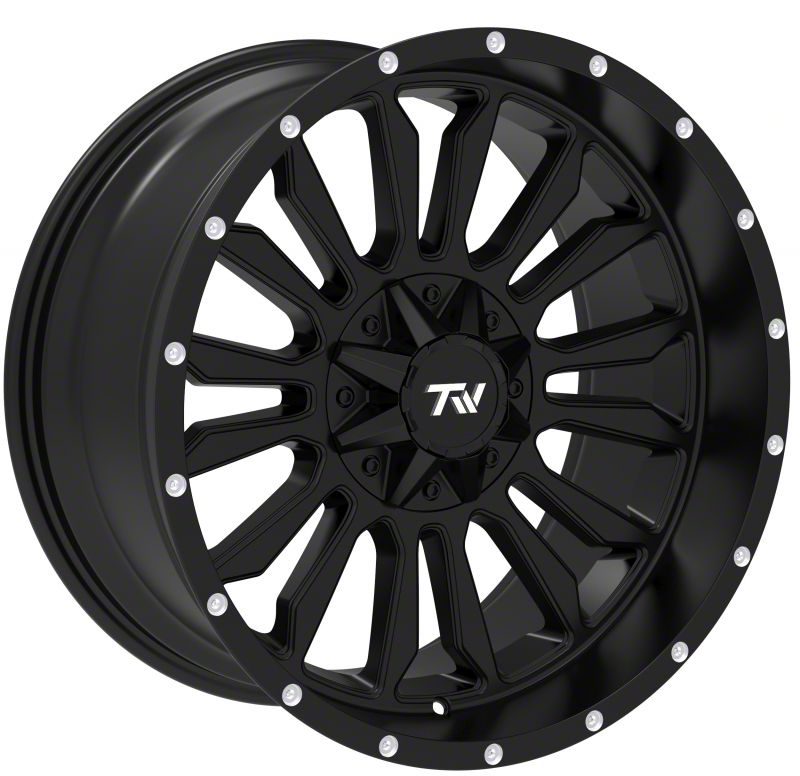The 20x10 TW Offroad T6 Speed Gloss Black with Milled Spokes 6-Lug Wheel; 20x10; -12mm Offset is completed in a high-quality gloss black finish with milled accents that will make others green with envy. For added protection and good looks, this wheel features a durable clear coat that can withstand the hazards of daily driving.