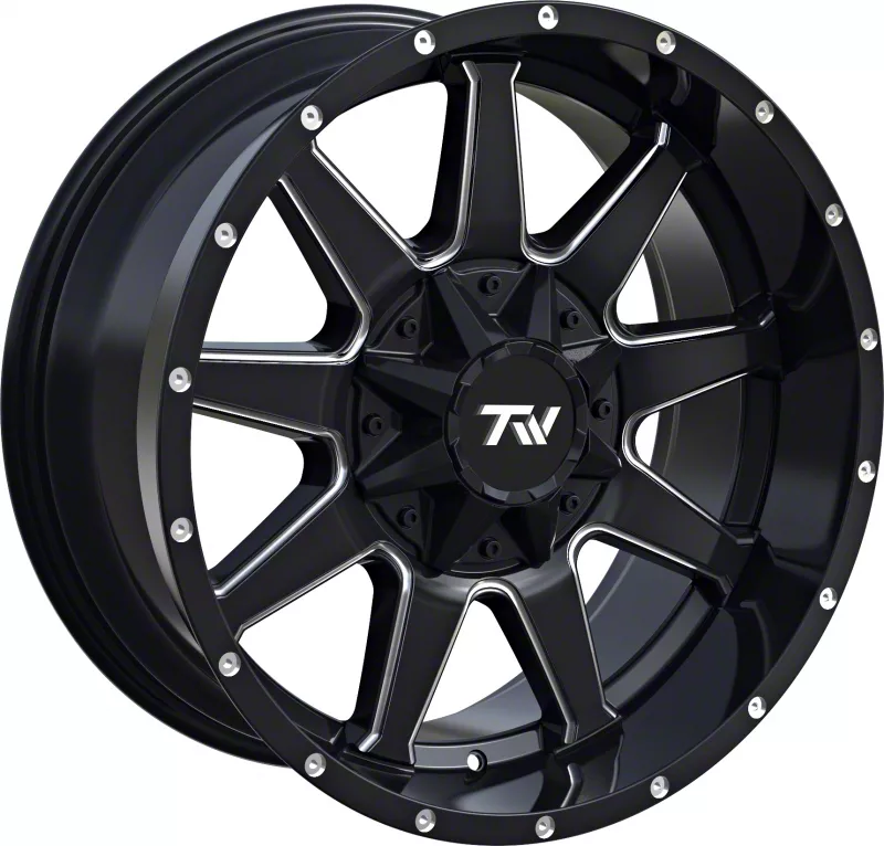 The 20x9 TW Offroad T9 Simple Gloss Black with Milled Spokes 6-Lug Wheel; 20x9; -12mm Offset is completed in a high-quality gloss black finish with milled accents that will make others green with envy. For added protection and good looks, this wheel features a durable clear coat that can withstand the hazards of daily driving.