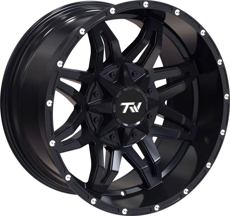 This 20x10 TW Offroad T2 Spider Gloss Black 6-Lug Wheel; 20x10; -12mm Offset is completed in a high-quality gloss black finish that will be the envy of everyone. For added protection and looks, there is a clear coat designed to handle whatever the road, or beyond, throws at it.