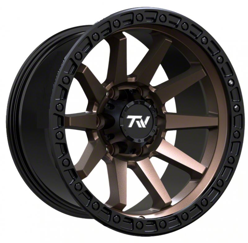TW Offroad T21 Straight Matte Black with Bronze 6-Lug Wheel; 17x9 ; 0mm Offset This wheel offers a sleek and modern design that enhances the visual appeal of your vehicle. Its metallic gunmetal finish adds a touch of elegance and sophistication, making it a perfect fit for those who want to make a bold statement on the road.