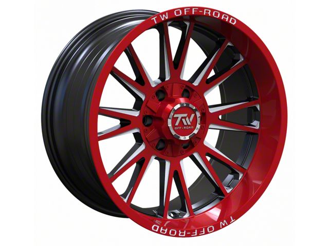 The 20x10 TW Offroad TF2 Black Machined with Red 6-Lug Wheel is completed in a high-quality gloss black machined finish with colored accents. For added protection and good looks, this Wheel features a durable, matte clear coat that is tough enough to stand up against the hazards of everyday driving.