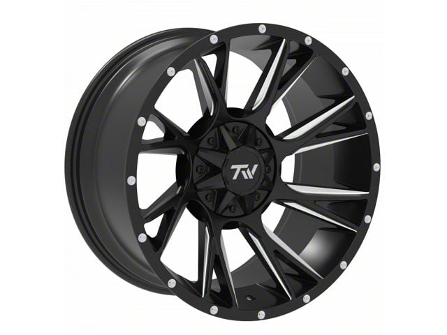 TW Offroad T12 Blade Gloss Black with Milled Spokes 5-Lug Wheel; 20x10. The TW Offroad T12 Blade Gloss Black with Milled Spokes 5-Lug Wheel; 20x10 features a sleek and modern design that enhances the overall aesthetic of any vehicle. Its brushed gunmetal finish adds a touch of sophistication and complements various vehicle styles. This wheel's premium construction ensures durability and a robust appearance.