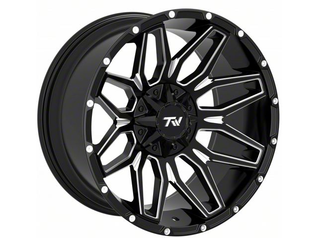 The 20x9 TW Offroad T3 Lotus Gloss Black with Milled Spokes 5-Lug Wheel; 20x9 is completed in a high-quality gloss black finish with milled accents that will make others green with envy. For added protection and good looks, this wheel features a durable clear coat that can withstand the hazards of daily driving.