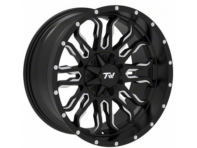 The 20x10 TW Offroad T8 Flame Gloss Black with Milled Spokes 5-Lug Wheel; 20x10 is completed in a high-quality gloss black finish with milled accents that will make others green with envy. For added protection and good looks, this wheel features a durable clear coat that can withstand the hazards of daily driving.