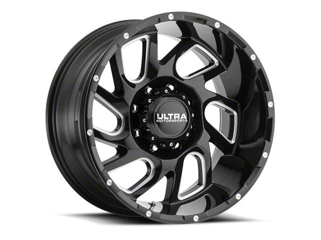 The 20x10 Ultra Wheels Carnage Gloss Black Milled 6-Lug Wheel; 20x10; -25mm Offset is completed in a high-quality gloss black finish with milled accents that will make others green with envy. For added protection and good looks, this wheel features a durable clear coat that can withstand the hazards of daily driving.