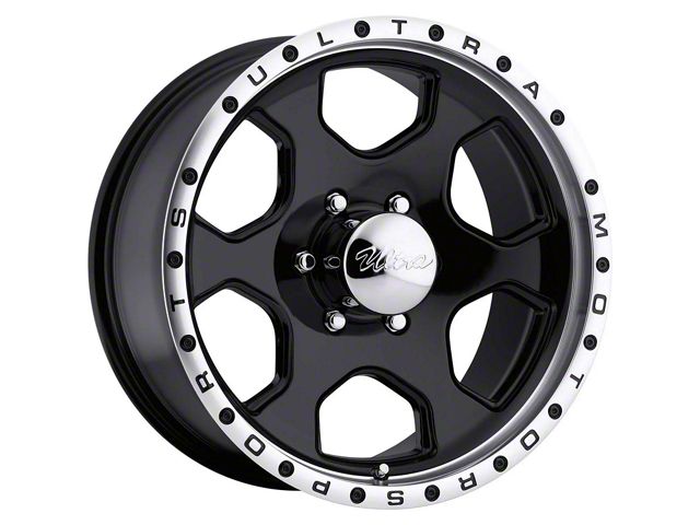 This 17x8 Ultra Wheels Rogue Gloss Black Machined 6-Lug Wheel is completed in a high-quality gloss black finish with machined accents to create an impressive appearance. There's a durable clear coat that protects against driving hazards.