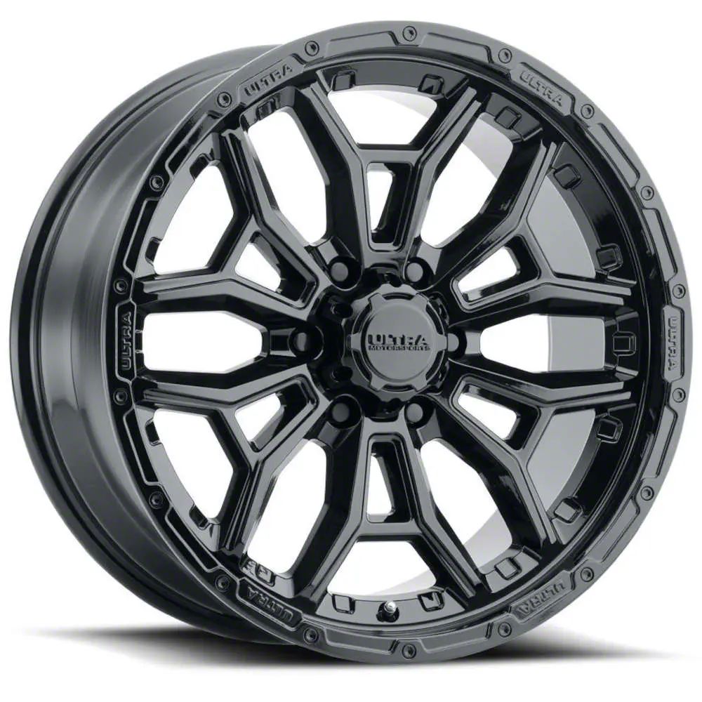 The 17x9 Ultra Wheels Warmonger 6 Gloss Black 6-Lug Wheel is completed in a high-quality gloss black finish, which looks great. Thanks to a durable clear coat, the finish also protects against the rigors of driving.
