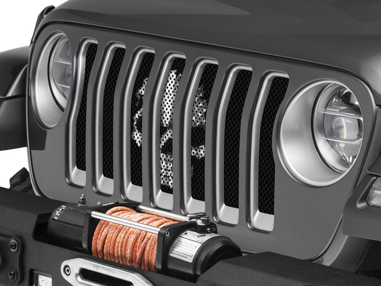 Application. The Under The Sun Inserts Grille Insert; BlackOut Skull fits 2018-2023 Jeep Wrangler JL models without TrailCam; 2024-2026 Jeep Wrangler JL Sport models.