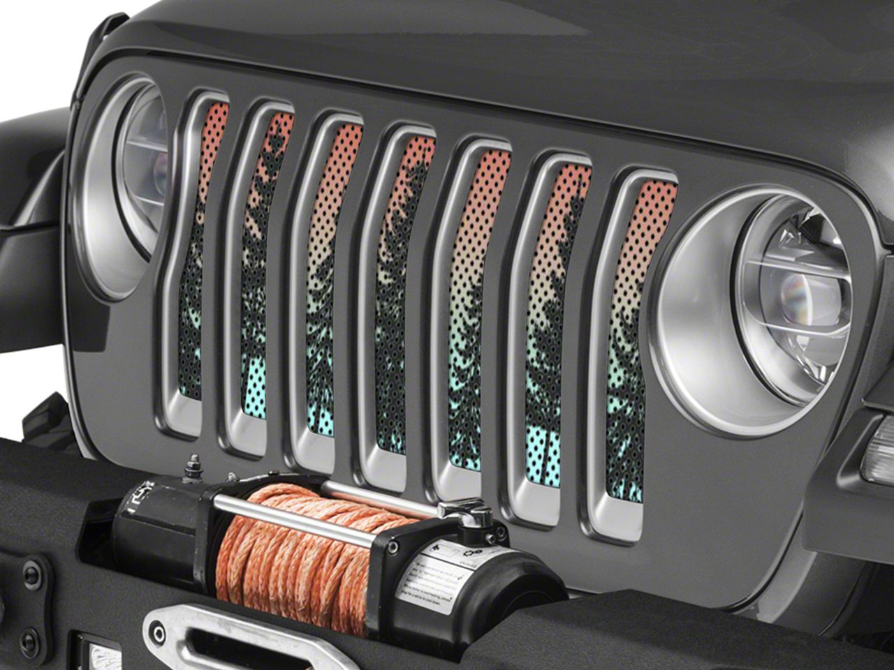 Durable Construction and Ease of Installation. Constructed with high-quality perforated aluminum, this grille insert is built to last, withstand the elements, and resist corrosion and rust, making it an ideal enhancement for your Jeep Wrangler JL. The Pine Trees Red Sky design adds a unique and eye-catching touch, ensuring your vehicle stands out. Designed for straightforward installation, this grille insert can be fitted without the need for drilling or any modifications, ensuring a hassle-free upgrade that enhances both the functionality and style of your vehicle.