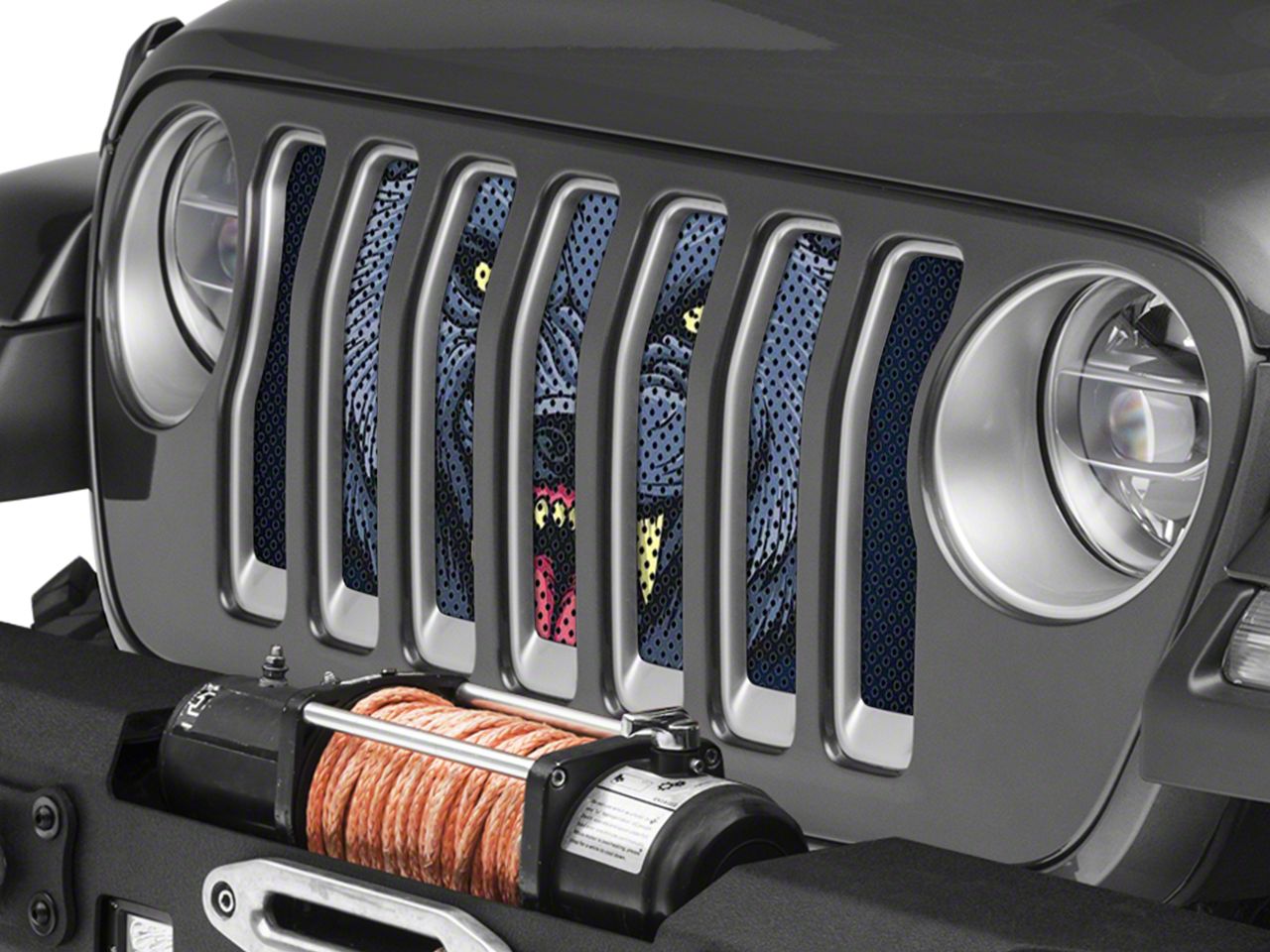 Amazing Design That Lasts. Each grille insert is printed with high quality, vibrant ink that will last for years without fading or chipping no matter what weather or road conditions your Jeep is exposed to.