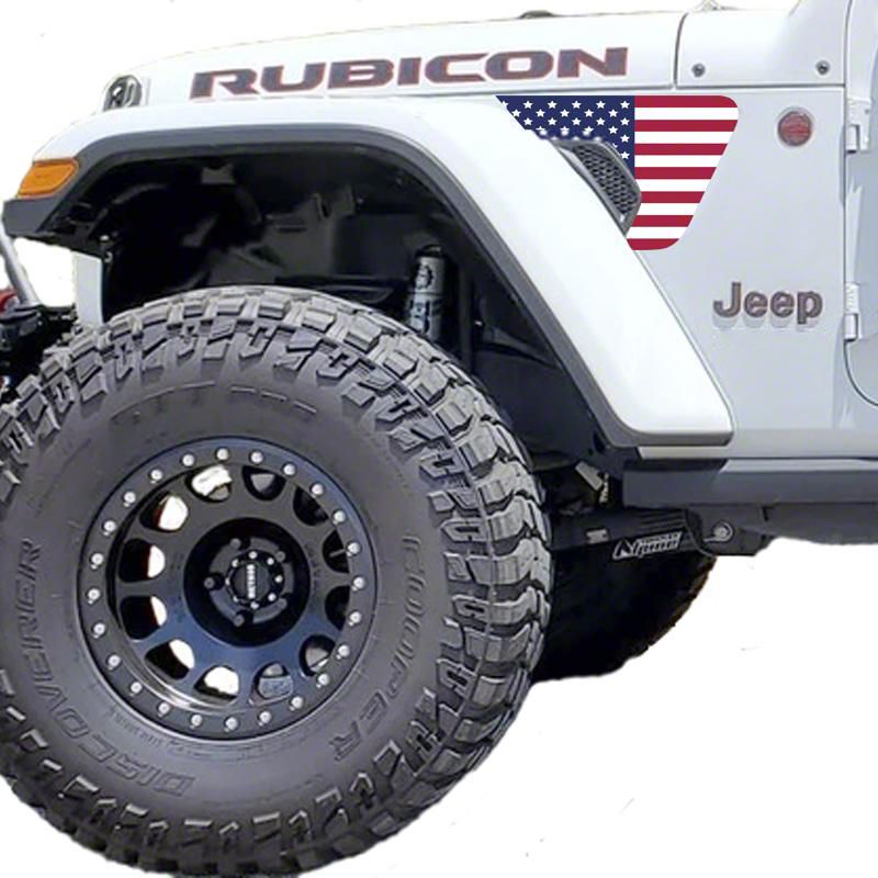Application. These Under the Sun Old Glory US Flag Fender Vent Decals are designed to fit 2020-2026 Jeep Gladiator JT models. Driver and passenger side included.