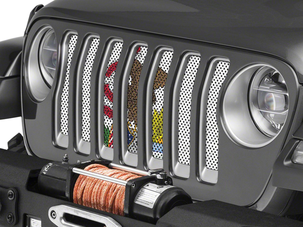 Amazing Design That Lasts. Each grille insert is printed with high quality, vibrant ink that will last for years without fading or chipping no matter what weather or road conditions your Jeep is exposed to.