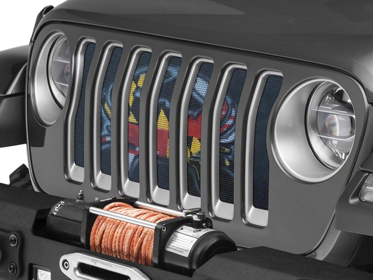 Amazing Design That Lasts. Each grille insert is printed with high quality, vibrant ink that will last for years without fading or chipping no matter what weather or road conditions your Jeep is exposed to.