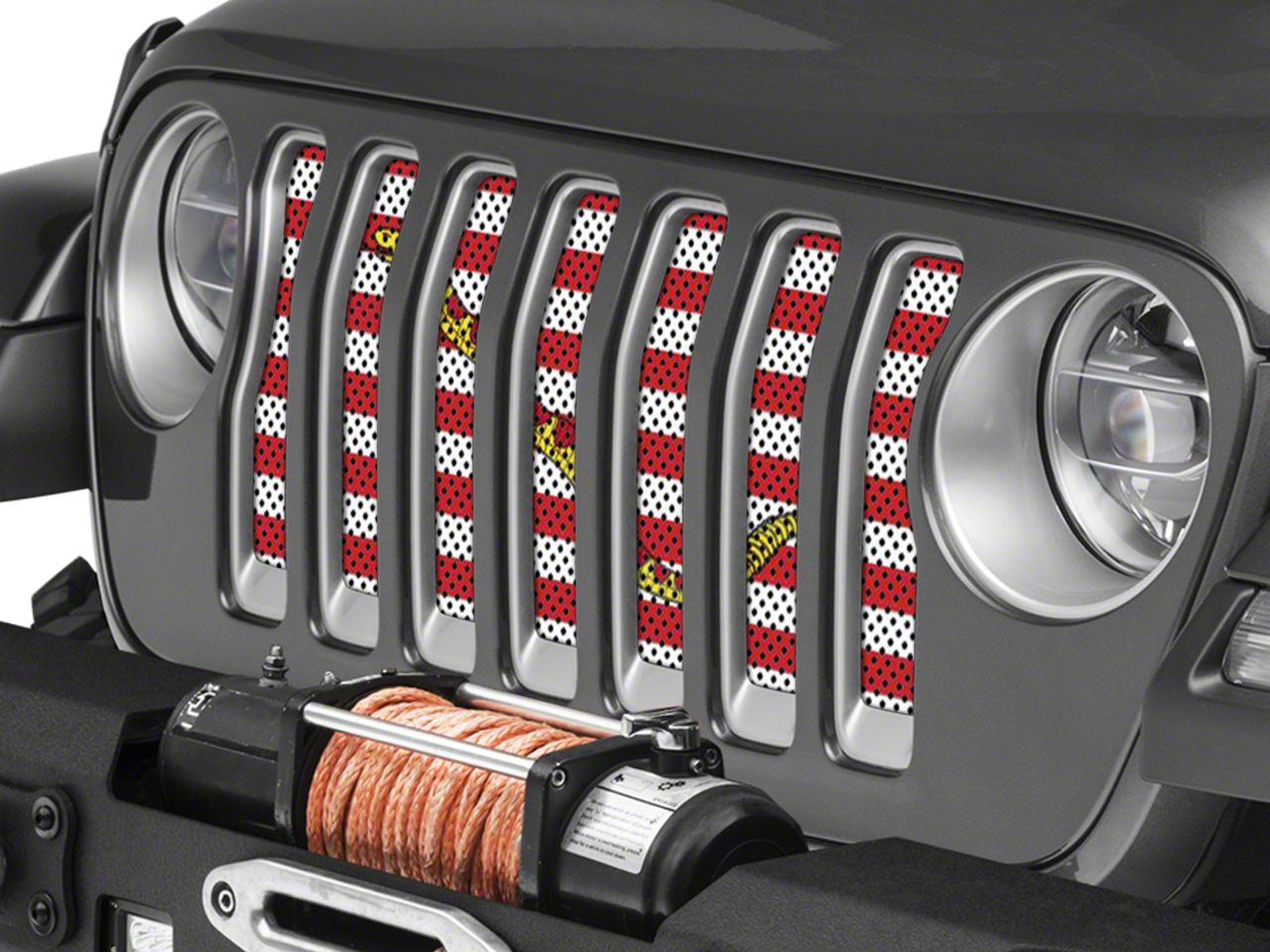 Amazing Design That Lasts. Each grille insert is printed with high quality, vibrant ink that will last for years without fading or chipping no matter what weather or road conditions your Jeep is exposed to.