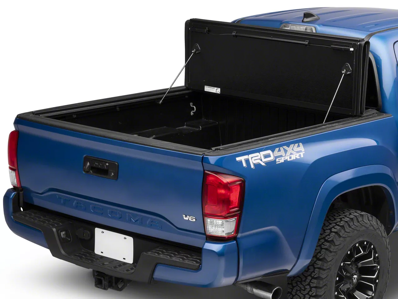Easy Folding Panels. This UnderCover Flex Tri-Fold Tonneau Cover gives you an easy way to access your Tacoma's truck bed with its unique tri-fold cover design. Designed to fold 3 ways, this tonneau cover will let you accommodate cargo of varying sizes without completely removing the cover. Using this tonneau cover is made easier with the dual action tailgate seal. This seal allows you to open or close your tailgate no matter if the third cover panel is opened or closed.