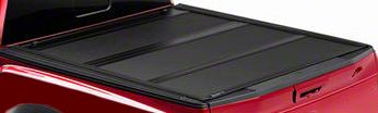 Convenient Tri-Fold Design. This tonneau cover has a convenient tri-fold design, allowing you to open it partially or completely depending on your needs. If you open it all the way, you can secure it in position using the prop rods. This tonneau cover also features a dual-action tailgate seal, allowing you to close the tailgate without having to open the cover. You can also close the cover without having to lower the tailgate. For even more convenience, the latches can be opened from either side of the truck bed and lock automatically when you close the cover.