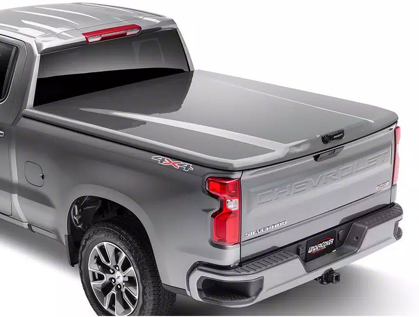 Enhance Functionality and Style. The UnderCover Elite LX Hinged Tonneau Cover (Pre-Painted), a high-quality and durable truck bed cover designed to enhance functionality and style. Equipped with LED lighting, the cover illuminates the truck bed, providing convenient visibility in dark environments. The carpet-lined underside adds a touch of luxury and protects your cargo from scratches.