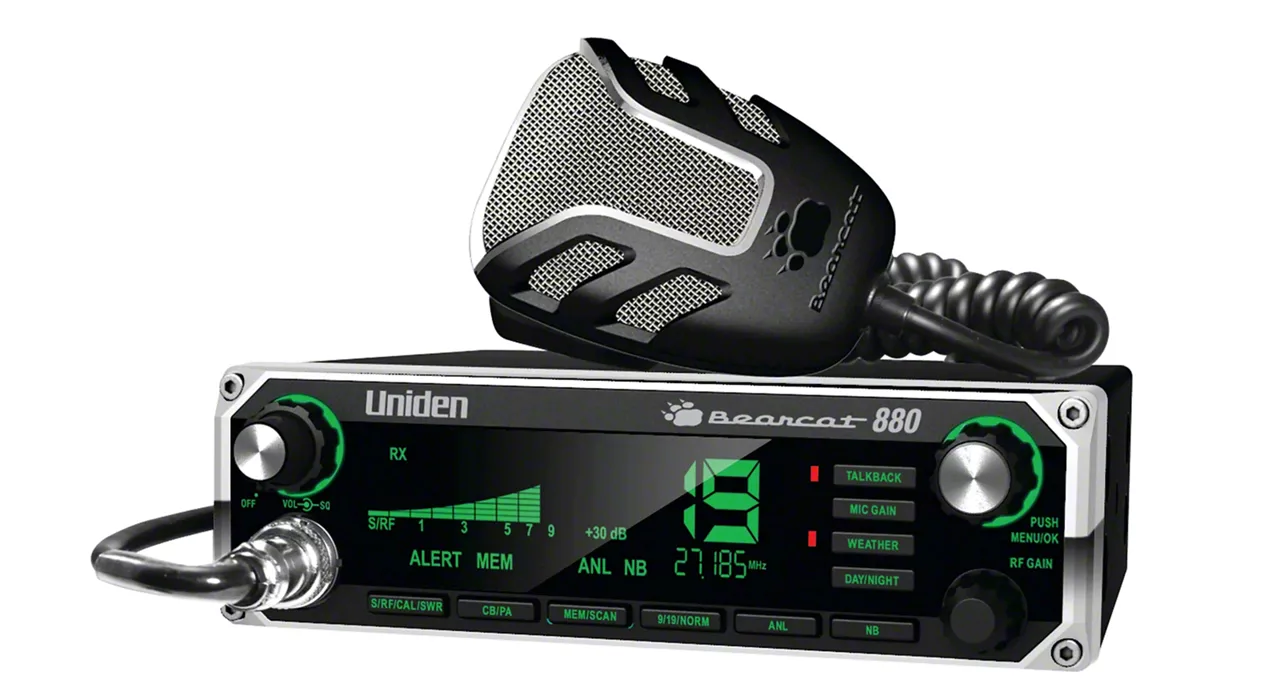 Stay Connected. The Uniden Bearcat 880 CB Radio keeps you informed and connected on the road. Universally adaptable, this CB radio comes packed with advanced features like a large display, integrated SWR meter, and access to NOAA weather channels. Perfect for long hauls or off-roading adventures, it ensures you're never out of the loop.