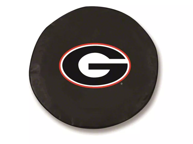 Georgia Bulldogs Logo. Show off your fandom with this NCAA officially licensed University of Georgia G Spare Tire Cover. This cover consists of durable vinyl with a black background and a University of Georgia “G” logo superimposed on top. This tire cover will look great on the back of your Jeep and is designed to protect your spare tire from UV and ozone exposure.
