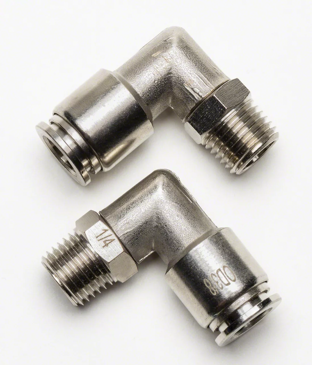 Durable Construction. Each 90 Degree ⅜-inch Swivel Push to Connect Fitting meets Up Down Air System, LLC’s top standards of quality. Each fitting is made from high-grade brass and finished with nickel for additional protection and longevity.