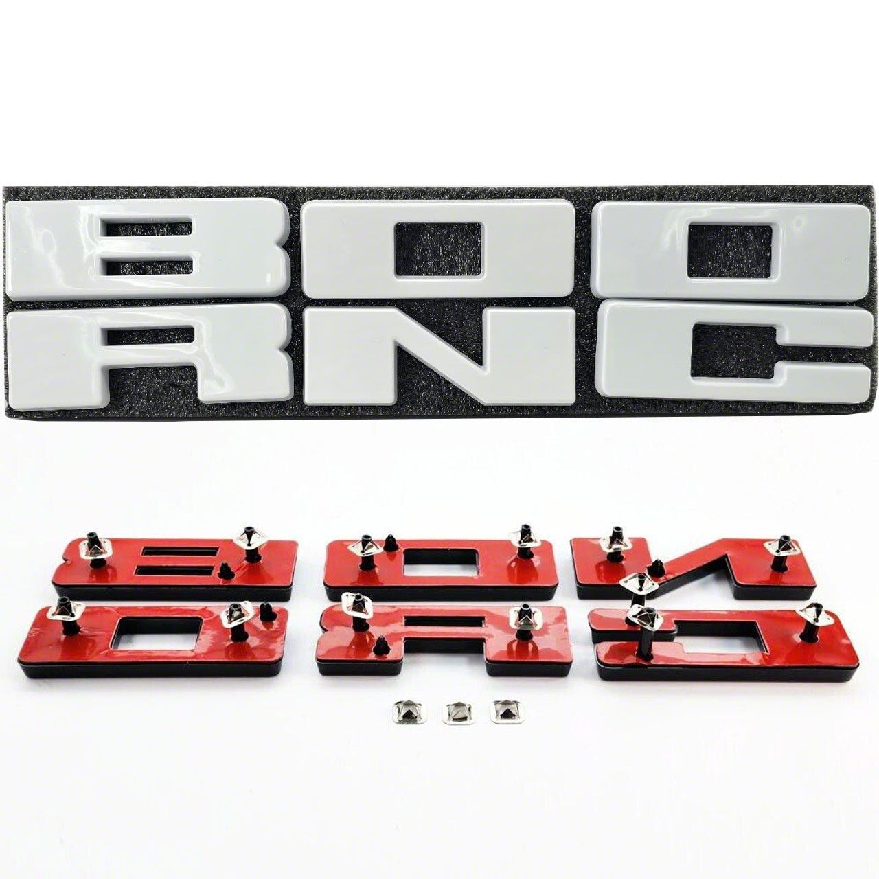 Construction and Durability. Crafted from high-quality materials, these grille letters are built for durability and long-lasting performance. The included locating pins and locking clips ensure a secure attachment, preventing shifting or misalignment over time.