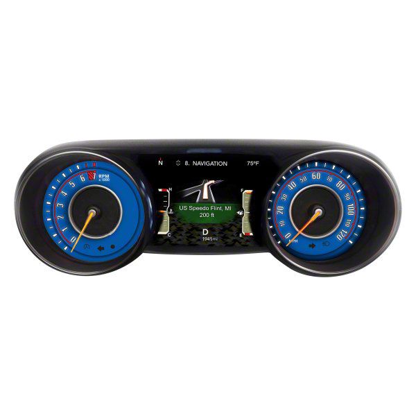 First-Rate Functional Design. Improve the look of your vehicle's interior with the US Speedo Daytona Edition Gauge Face. It features a 120 MPH speedometer range and is screen printed on premium polycarbonate plastic for maximum durability and visibility. It also has a sleek blue face and gauge color for a modern and stylish look. Additionally, it displays all factory data, ensuring that your vehicle's essential information is easily visible at all times. With its high-quality design and premium materials, the US Speedo Daytona Edition Gauge Face is an excellent choice for anyone looking to upgrade their vehicle's interior and enhance its functionality.