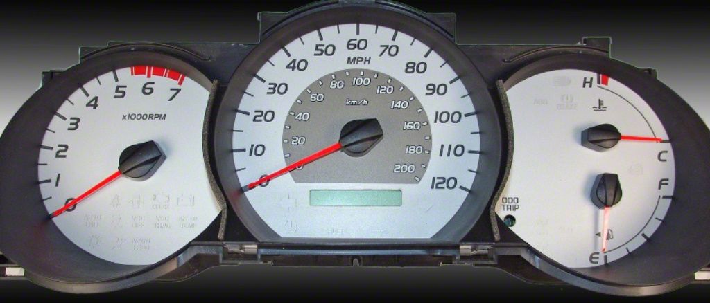 Enhanced Visibility and Style. Elevate the interior of your Tacoma with the sleek, sophisticated look of the US Speedo Daytona Edition Gauge Face; KMH; Silver. Compatible with your ride's original night lighting, this gauge face is designed to enhance visibility in low-light conditions, allowing for a clear, easily readable display at any time of day or night. The gauge face features a stunning silver finish that adds a touch of elegance and modernity to your vehicle's interior. Its high-quality material ensures durability and resistance to fading, maintaining its sleek appearance over time.