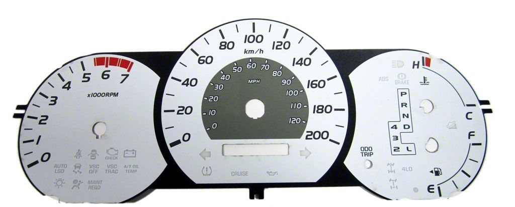 US Speedo Daytona Edition Gauge Face; KMH; White (05-08 Tacoma w/ Automatic Transmission)Find parts that fit my vehicle
