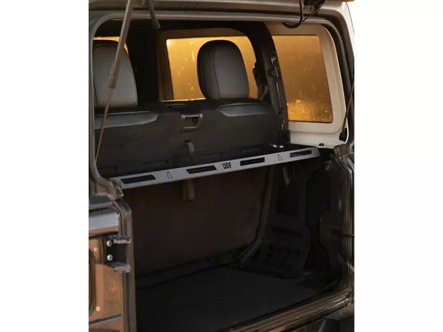 Optimized Storage Solution. The Utah Design Foundry Interior Cargo Rack is built for adventurers who need secure and versatile interior storage in their 2018-2026 Jeep Wrangler JL 2-Door models. This rack enables the organized mounting of compressors, power tanks, Pelican cases, Packouts, and a wide range of other gear. Its intelligent design maximizes available cargo space while keeping essential equipment accessible and secure.