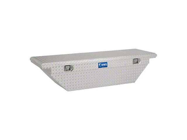 Safe, Organized, and Accessible. Boost your truck's utility with the UWS 60-Inch Aluminum Low Profile Angled Tool Box, featuring a sleek bright aluminum finish that not only enhances your truck's appearance but also provides unmatched durability. The box opens effortlessly to a 90-degree angle, revealing tool trays that ensure easy organization of your essentials. Designed to fit seamlessly with your truck's unique bed size and wheel well shape, this low profile, angled tool box maximizes storage space without compromising the look of your vehicle.