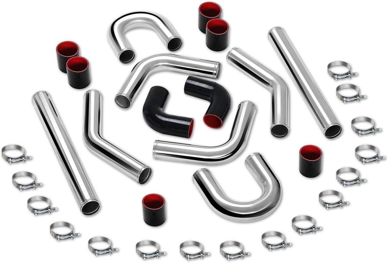 2.50-Inch Aluminum Intercooler Piping Kit; 8-Piece; Brushed (Universal; Some Adaptation May Be Required)