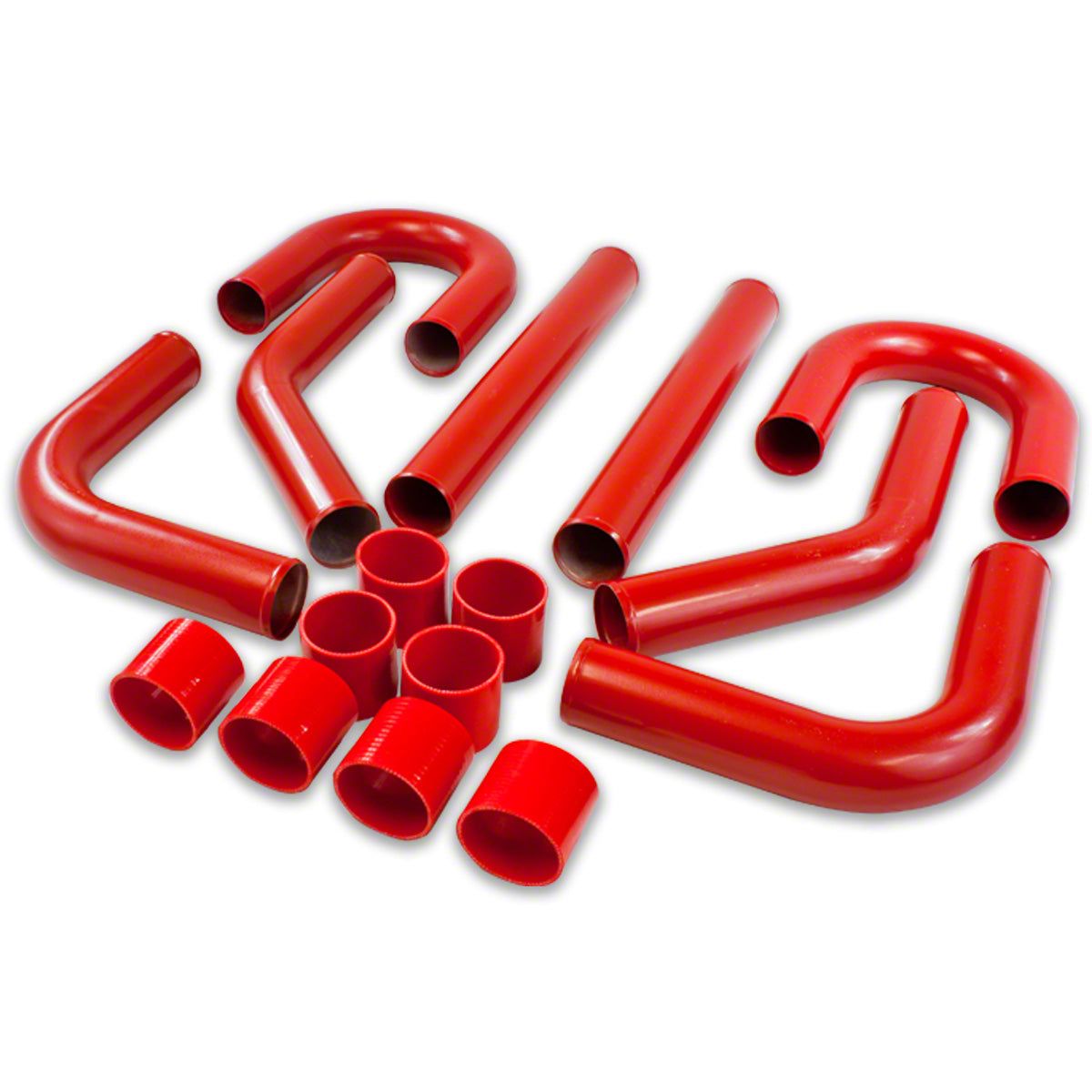 2.50-Inch Aluminum Intercooler Piping Kit; 8-Piece; Red (Universal; Some Adaptation May Be Required)