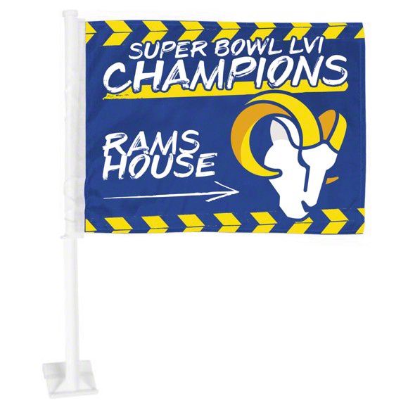 Car Flag with Los Angeles Rams Super Bowl LVI Champions Logo; Blue (Universal; Some Adaptation May Be Required)