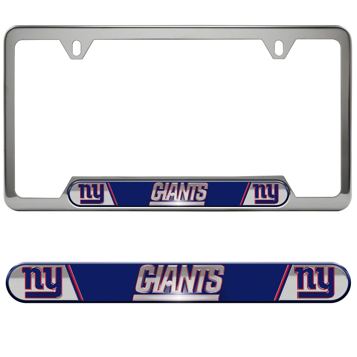Embossed License Plate Frame with New York Giants Logo; Chrome (Universal; Some Adaptation May Be Required)