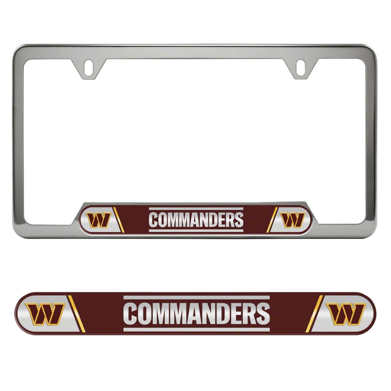 Embossed License Plate Frame with Washington Commanders Logo; Chrome (Universal; Some Adaptation May Be Required)