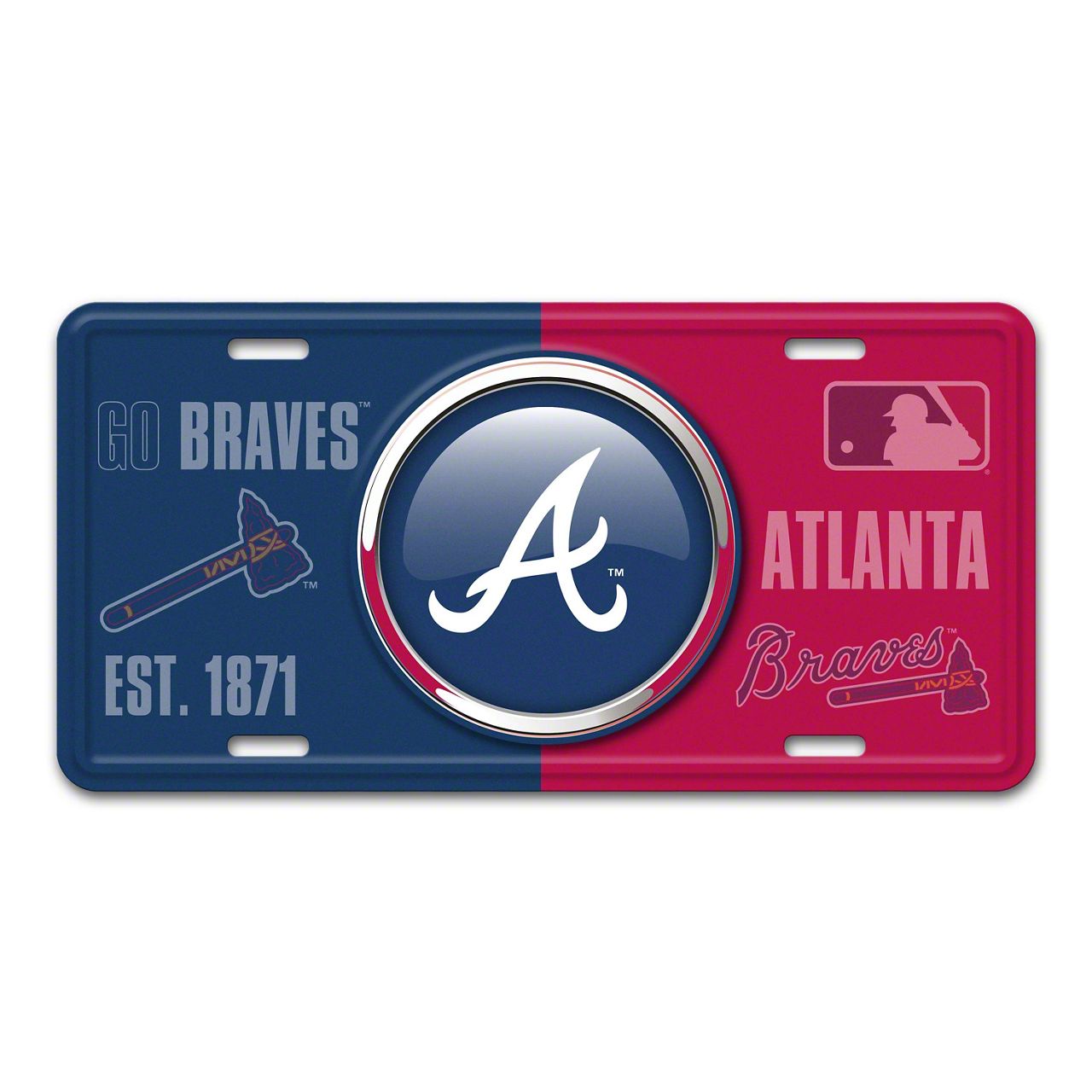 Embossed Metal License Plate with Atlanta Braves Logo; Navy / Red (Universal; Some Adaptation May Be Required)