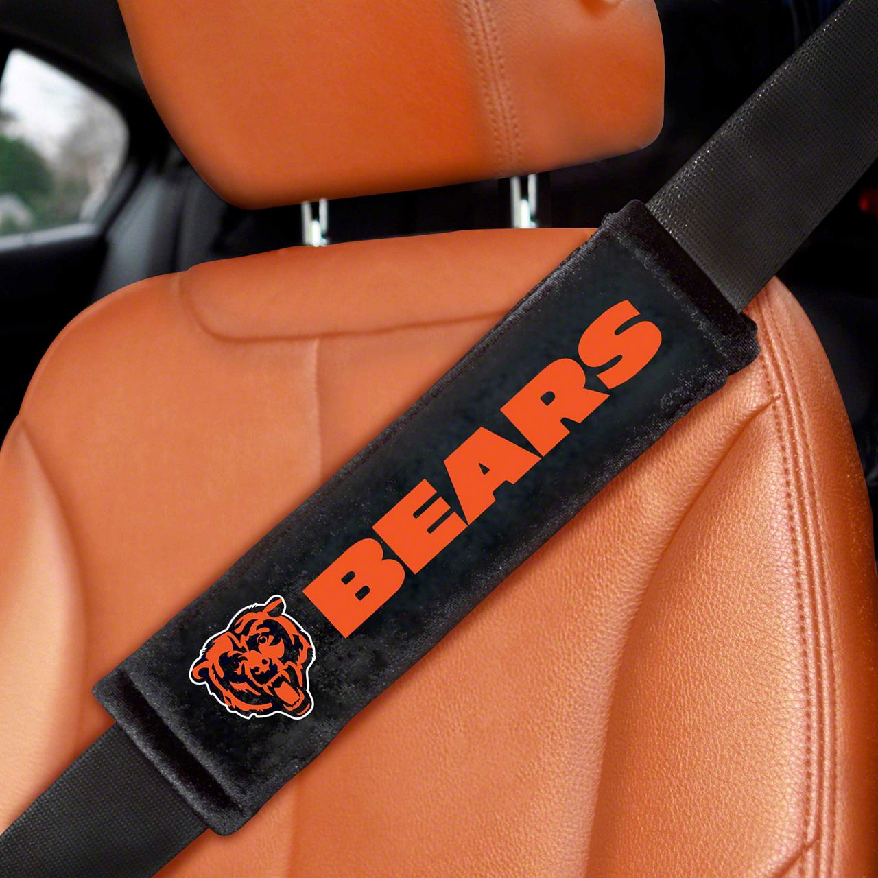 Embroidered Seatbelt Pads with Chicago Bears Logo; Black (Universal; Some Adaptation May Be Required)