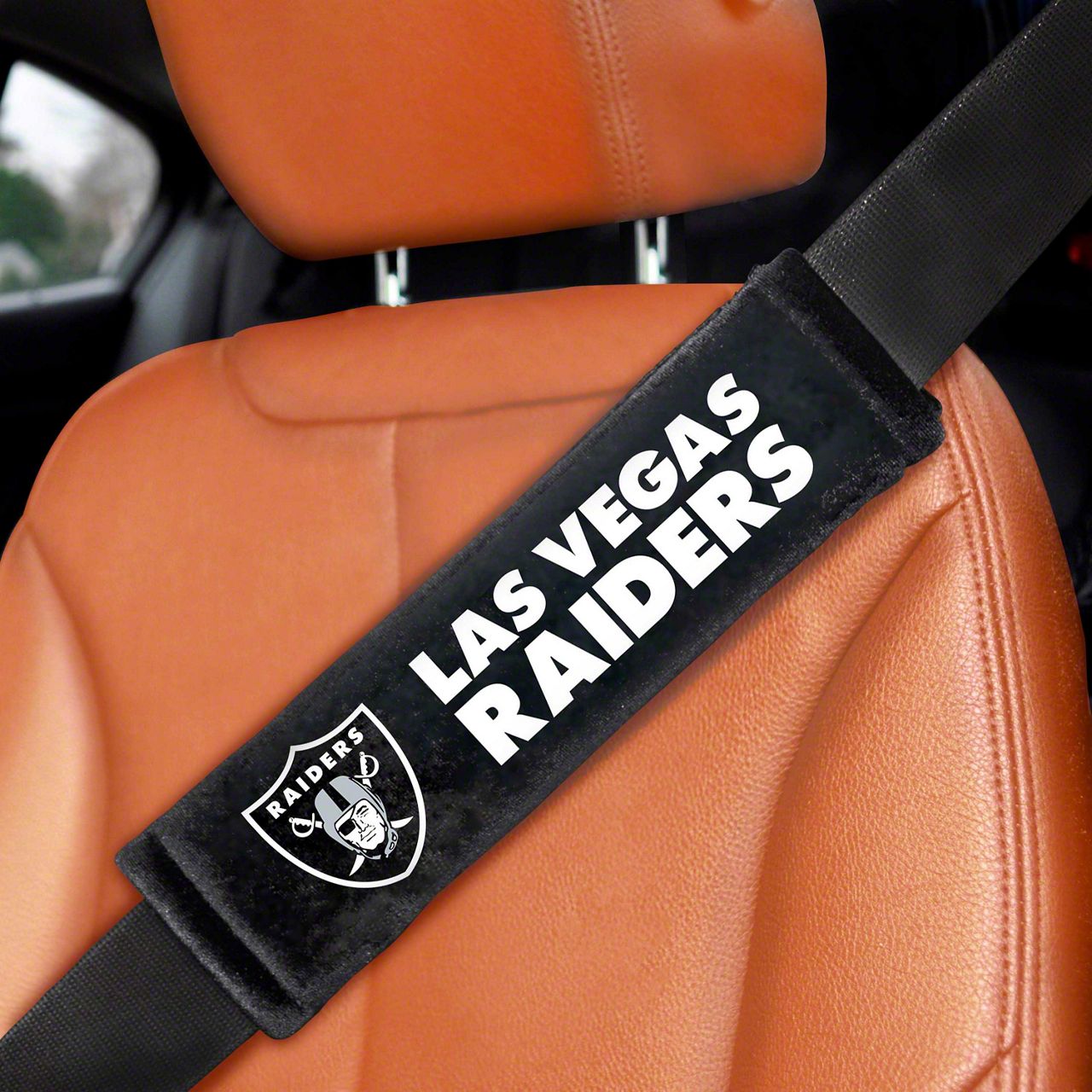 Embroidered Seatbelt Pads with Las Vegas Raiders Logo; Black (Universal; Some Adaptation May Be Required)