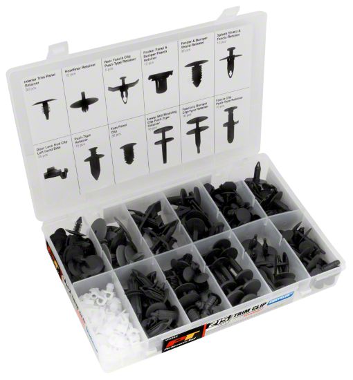 Convenient Organizer. The Ford Trim Clip Assortment is the perfect way to keep your car looking great. With 415 pieces of retainers, fasteners, and clips, this set has everything you need to easily fix your vehicle. The included organizer with illustrated insert makes it easy to find the right part for the job, and the clips are designed to work in tight spaces. Whether you're a professional detailer or a passionate do-it-yourselfer, this set is a must-have for anyone who wants their car to look its best.