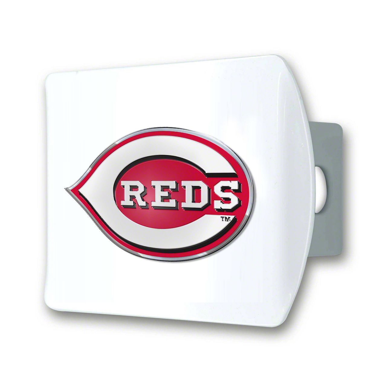 Hitch Cover with Cincinnati Reds Logo; White (Universal; Some Adaptation May Be Required)