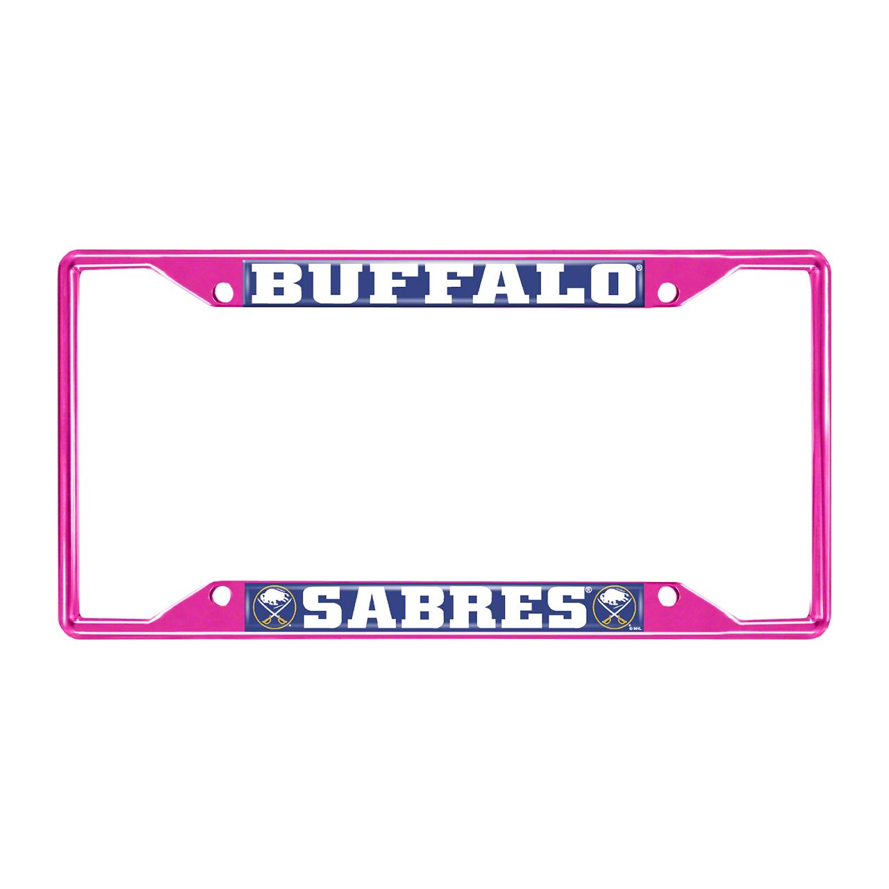 License Plate Frame with Buffalo Sabres; Pink (Universal; Some Adaptation May Be Required)