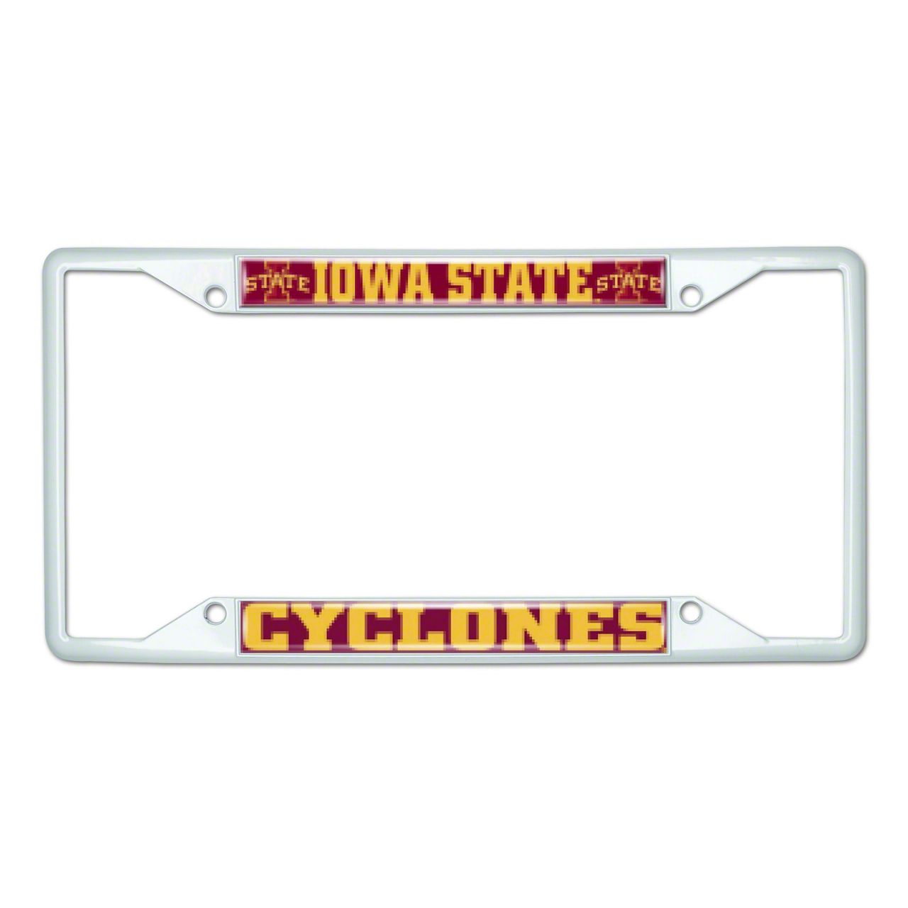 License Plate Frame with Iowa State; White (Universal; Some Adaptation May Be Required)